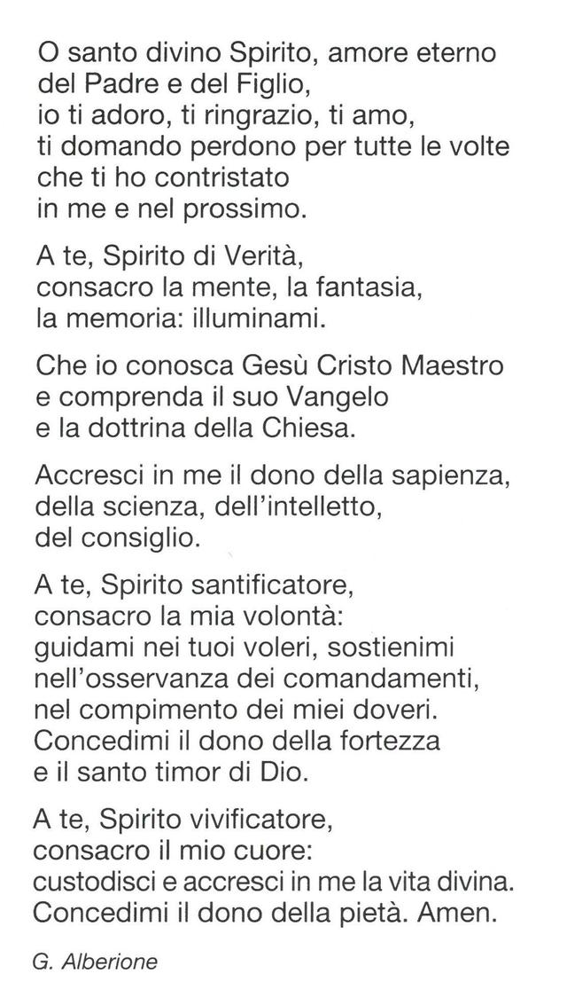 Cartoncino O Santo Spirito... sul retro la preghiera di G. Alberione. Dimensioni 14,5cm x 7,5cm
