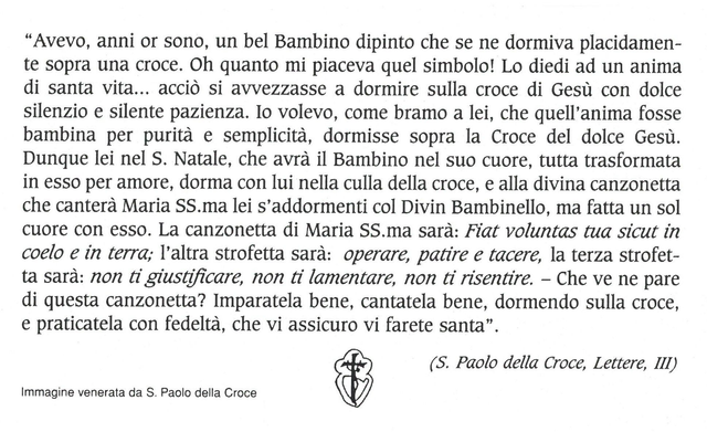 Santino Gesù Bambino. Immagine venerata da San Paolo della Croce. Dimensioni 13cm x 7cm